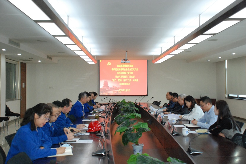 2024年度“產-銷-用三體聯動”黨建聯建活動于2024年1月11日在河冶科技舉辦,河冶科技黨委書記、董事長總經理米永旺、黨委副書記、常務副總經理梁敬斌、工會主席趙金伶、攀鋼釩鈦貿易公司黨總支書記、總經理汪朝云參加了本次活動。